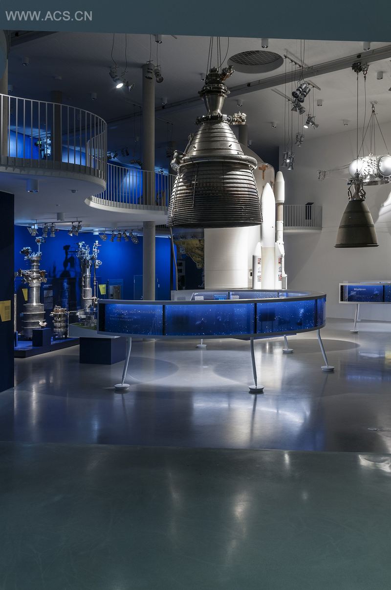 走廊中,真实比例的火箭模型、监视器、图像、文字和其他展品等,进一步讲述了国家和欧洲航天技术的历史。