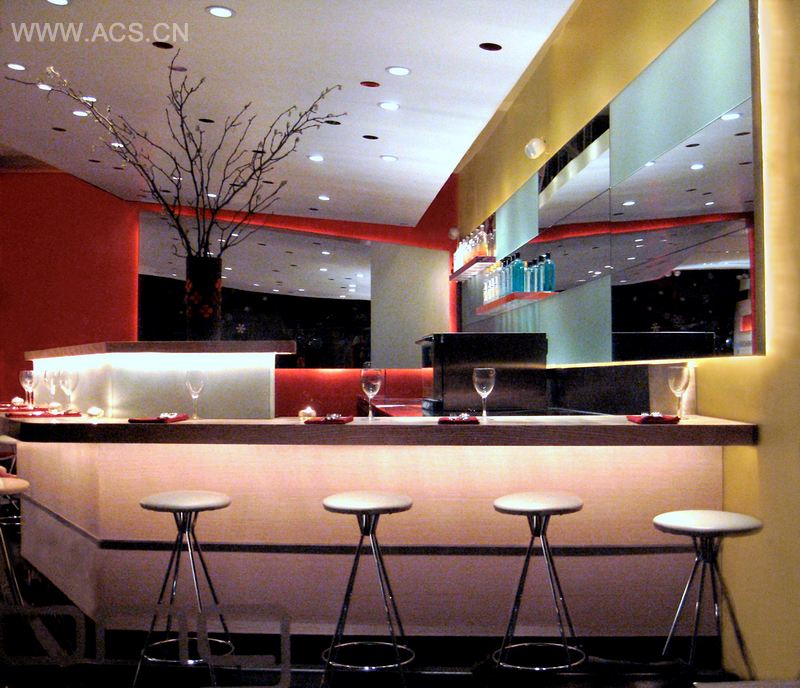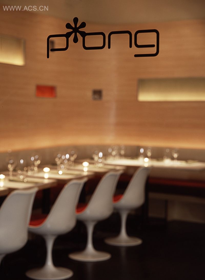 这家Pong餐厅的设计,与它的店名一样独特。墙上挂着的大型镜面,不仅在视觉上延展了空间,而且起到了补充光源的作用。放置在吧台显眼位置的枝状盆景,连同贯穿于整个空间的木质材料,给人以回到大自然般的清新氛围。安装于墙面及天花板的背景灯和小型射灯,又让人仿佛游走在光影交错的神秘天地。
