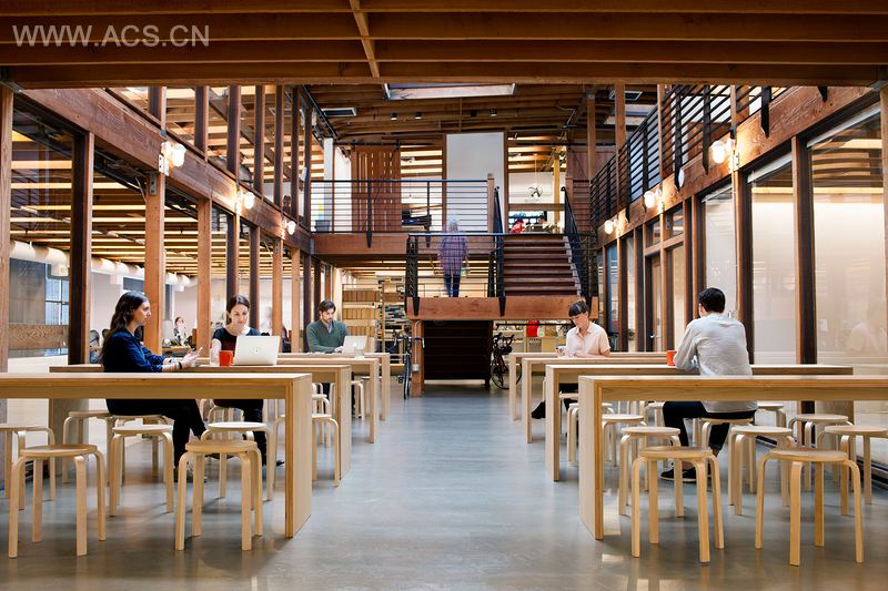Postmates是一家速递公司,设计师采用自然朴素的木来填满整个空间。