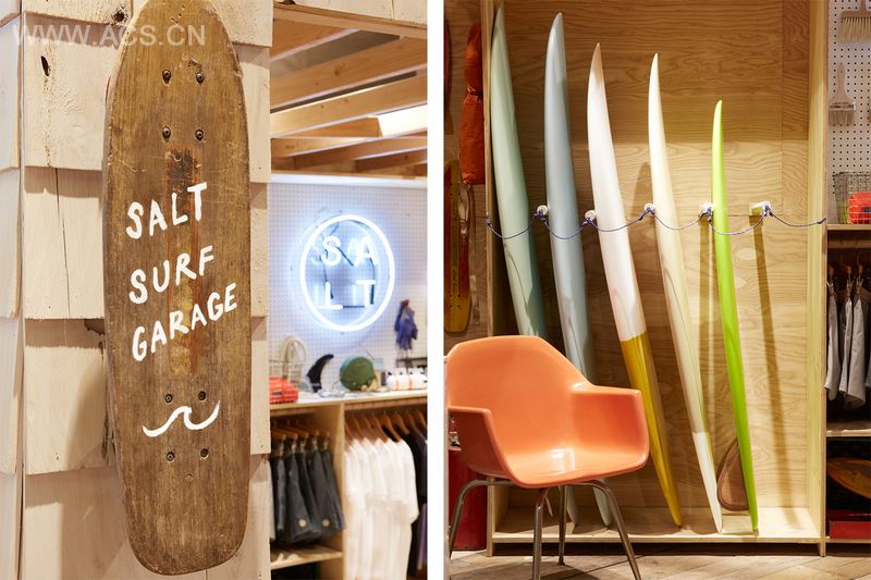 设计师需要将这种冲浪精神运用到店铺空间中,带有海风咸味,灿烂阳光味道的让人愉悦的空间。