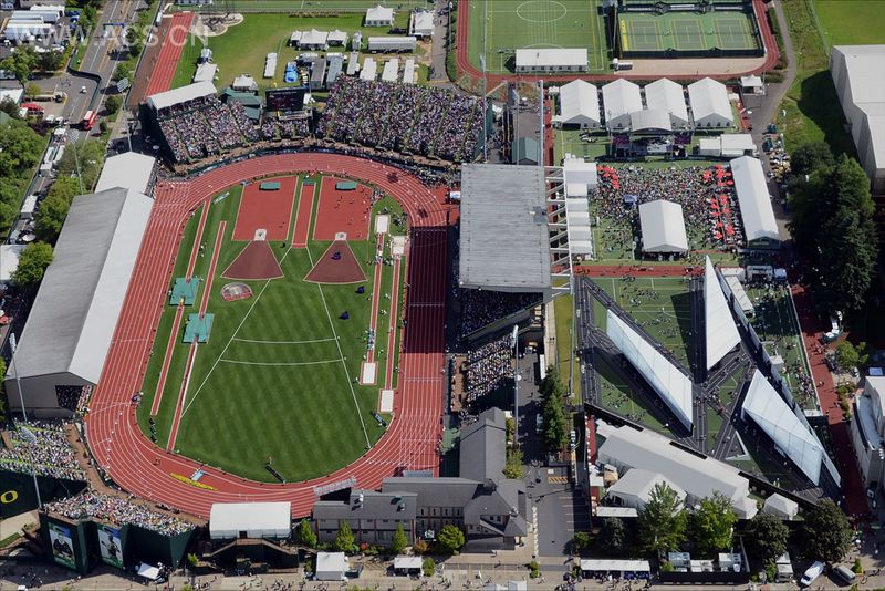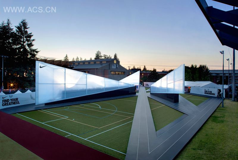 A series of three pavilions were installed for ten days at Hayward Field at the University of Oregon to showcase Nike innovation during the U.S. Olympic Trials Track & Field Competition.