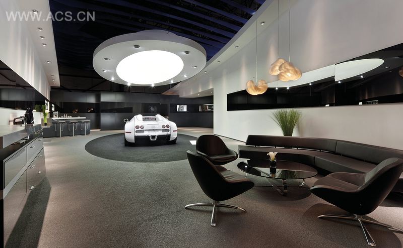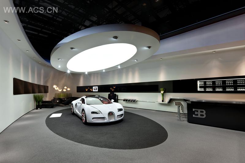 The new Bugatti motor show concept is a first-class, expressive stage that does not compete with the of desire but complements it in a harmonic way. It was first presented at Auto Shanghai 2011 and developed further for Auto China Beijing 2012. The fastest and best-in-class automobile of the world is showcased in an impressive way in an exhibit of approximately 300 sqm only. The Bugatti booth architecture translates the brand values art, form and technology into an associative experimental environment. Like the brand, the booth design is exclusive and of premium quality with an accentuated sportive touch and high dynamics. A communication strip adds a dynamic feature to the sculptural quality of the brand wall. The atmosphere is pure, technical, state-of-the-art. At the booth´s interior an emotional brand experience area and inviting showroom/lounge for dealers and customers was created.