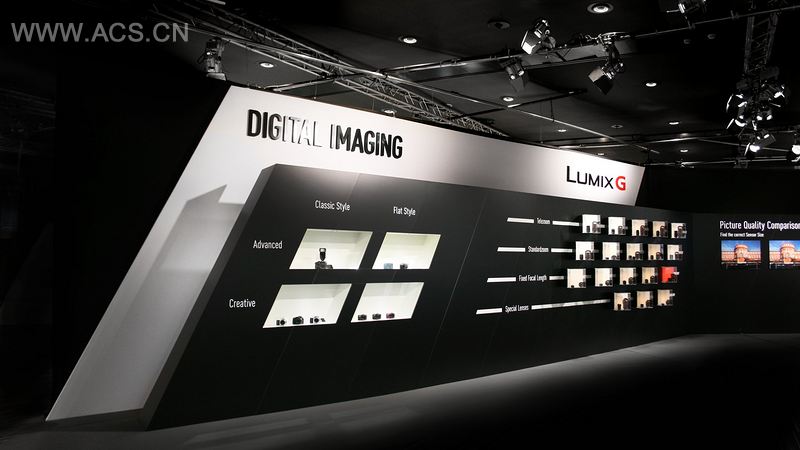 Panasonic is a global p in consumer electronics with a worldwide product portfolio for business and consumer customers. The values and goals of the brand Panasonic are translated into a spatial environment at the dealer convention in Nice. The design concept with its fragmentarily ed shape reflects the diversity and strength of the company and its products. The polygon symbolizes individuality, development and progress. In the four experience zones - Viera, Home Audio and Video, Digital Imaging and Home Appliances - the product qualities precision, technology and design can be experienced. The focus of the event that attracts dealers from all over Europe is the distinctive presentation of new products and trend-setting technologies.