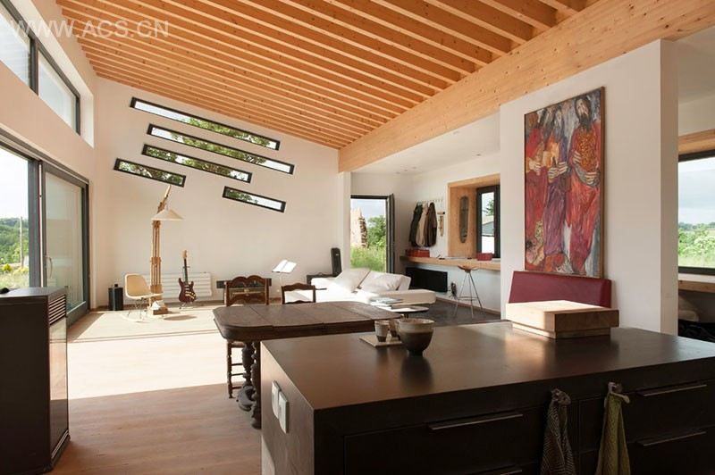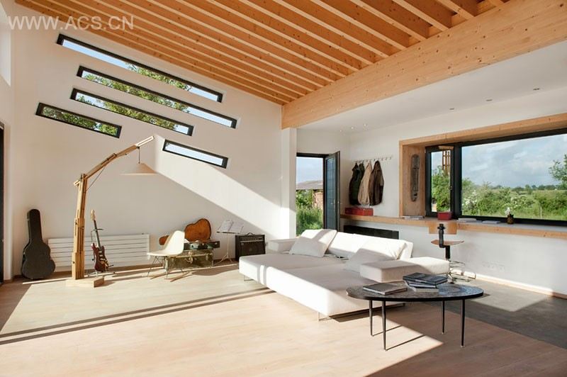 Hey contemporist friends! Here’s an idea for adding a bit of visual interest to a room. This home in France, designed by Architecture & Bois, has a collection of diagonal slit windows that follow the roof-line. They’re also arranged in an unconventional way, with a variety of different lengths.