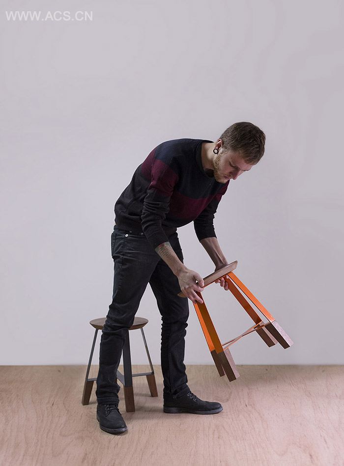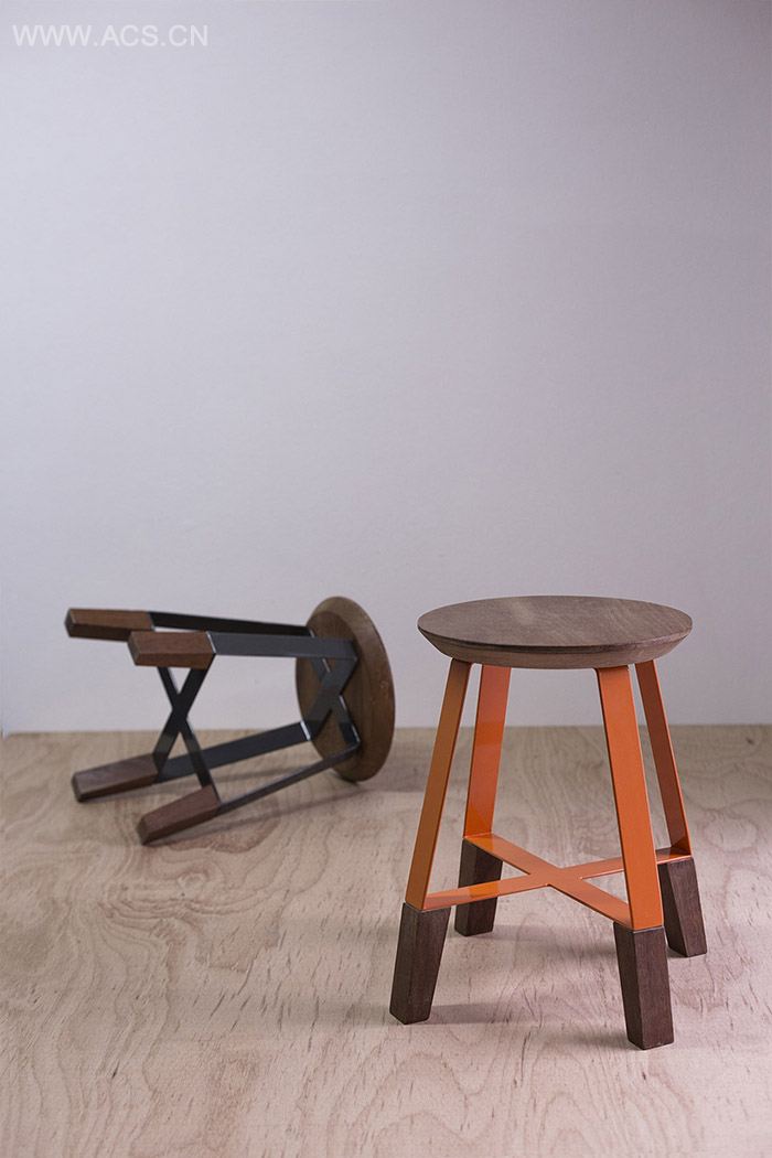 A4凳子系列结构简单,以原钢和来自巴西的再生木材为基本材料恰如其分地表达了这一“寻根”理念。
