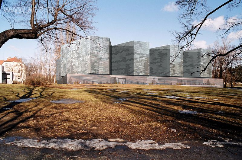 加内力建筑事务所在捷克国家图书馆的参赛方案由两大功能体块形成;书库和办公空间组合成为的整体的质量,轻盈的坐落在开放而透明的公共空间。‘网格’形态的主体作为藏书和库存管理,而透明的第一层空间为来访者提供了非常通透的公共功能。这种空间处理方式优化了整座建筑的能源消耗的性能,网格形态的大体积能够保持建筑内部整年的稳定温度,从而避免了任何的暖气和冷气的能源消耗。