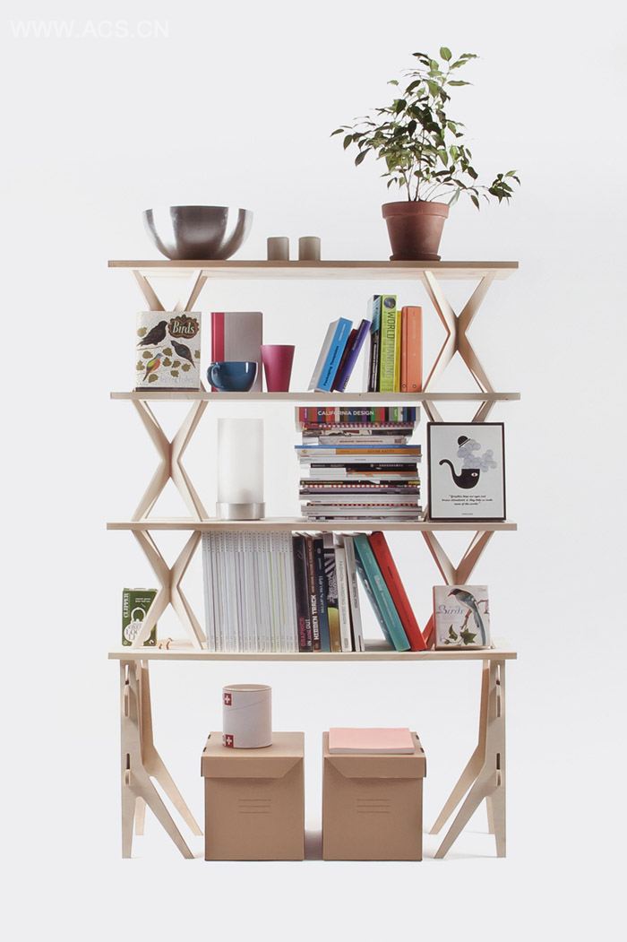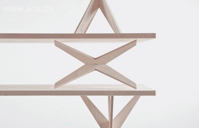 这是一个松木和胶合板组成的模块式搁架系统,可以根据用户的续修组合或者拆分。它没有任何固定的部分,每一块都是可拆卸的,能最大化方便人们使用,并且不需要一颗钉子或者螺丝。它的构件形状特别,可以组合成不同形式的搁架。松木和胶合板的选材是的搁架的重量适中,组装容易,调整方便。此外这个系统的下部分可以当成长凳使用。非常适合喜欢改变自己房间的朋友们。另外,拆起来也很快,拆完后的部分只占很小空间。