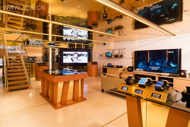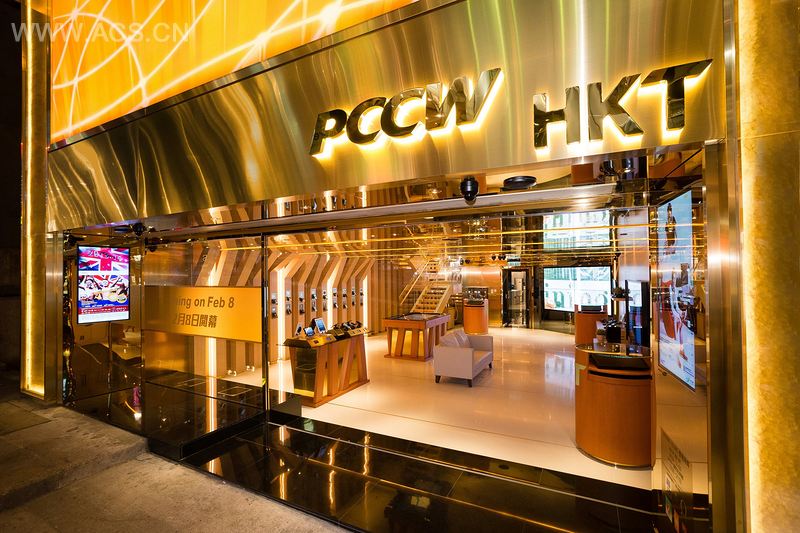 The brand new design of PCCW-HKT signature store reflects the brand’s leading position as Hong Kong’s most experienced and all-round telecom service provider, with a century of experience. Inspired by the Arc De Triomphe Paris, the rejuvenated shop image is characterized by an empowering LED-lit stone arch facade. It represents the solid foundation and deep heritage of the brand. Distinct interior design clearly defines the zoning for the brand’s two business focuses – mobile and home solutions. The application of wood evokes a sense of warmth to accentuate a cozy ambience for the home solutions, while the gold l, glass, mirror and LED lighting injects a sense of modernity to symbolize the fast-moving telecom industry.