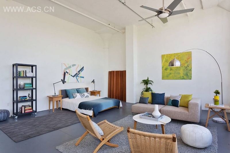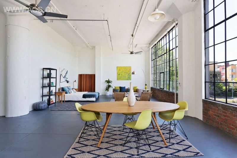 Fresh loft apartment designed by Visual Jill Interior Decorating, situated in Emeryville, California, United States.