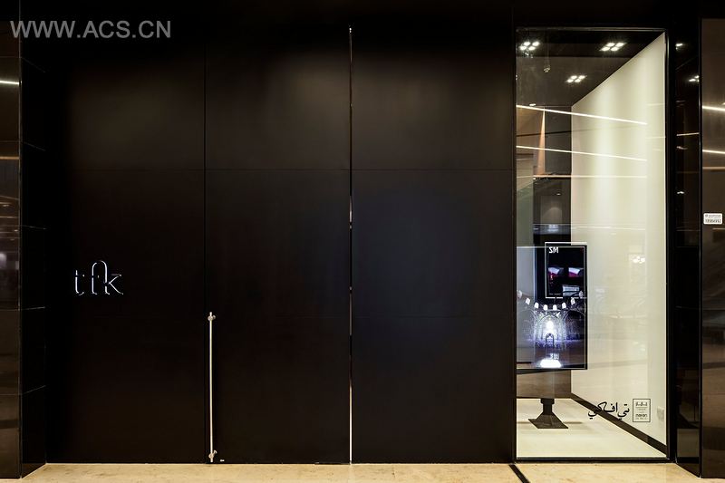 The Journey of the retail experience begins as it captivates the consumer with its minimal and discreet exterior appearance. The Signage, TFK, is extruded and backlit upon the dark façade of the entrance to create a sense of contrast to attract passing shoppers.