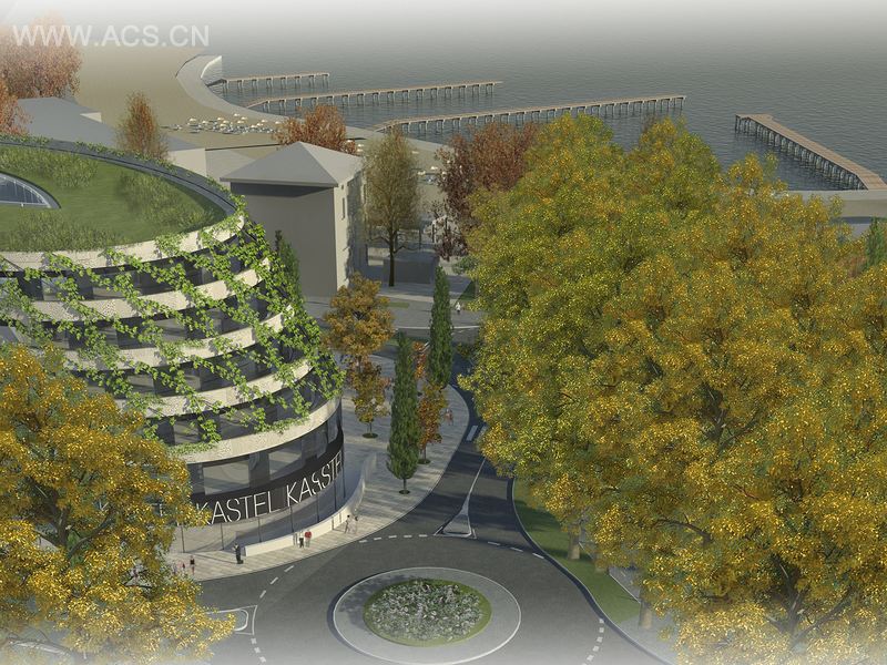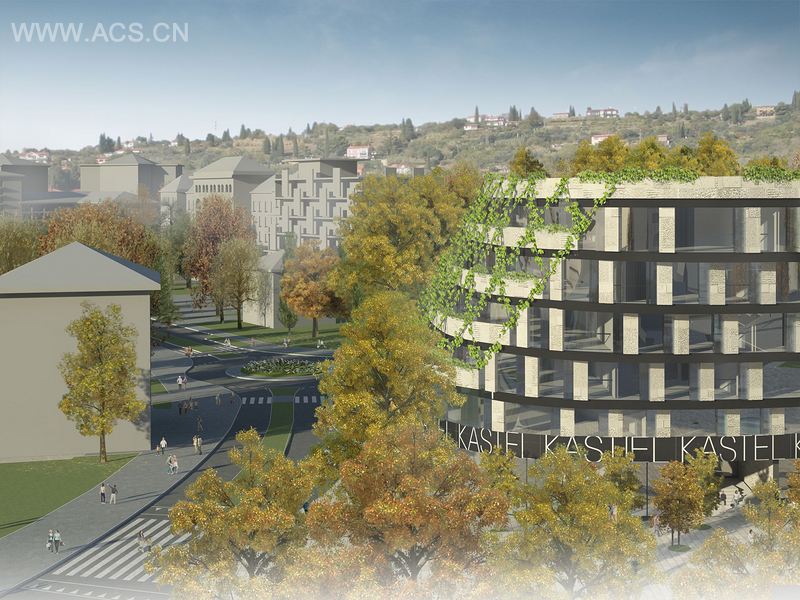 Portorose是在斯洛文尼亚海岸的一个顶级旅游地,在我们分析它的空间关系之后,提出了提案,并初步有了建设的可能性。该提案的内容为:在两边是两个邻近的建筑物的滨海大道旁,建造一个新的/唯一的广场。靠近滨海大道的城堡宫殿是一个转折点,它改变沿海滩的水流流动方向,成为镇上唯一的广场。建筑预想为一个代表性的零售宫,在顶层配带有专属办公室或公寓区。广场的建立启动了其他公共项目的相继创立,它们形成的锯齿状与城市以北的构造相似,逼近区域后面的音乐厅礼堂大楼和未来的维莱特多层停车场,从而将它们与中央活动区的前沿相连。一个拥有800个车位的车库位于整个区域之下,这缓解了滨海大道上的停车压力。