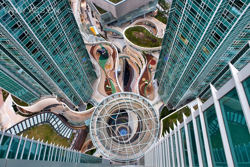 Mecenatpolis大楼坐落于不断更新换代的首尔市中心合井社区,毗邻合井火车站,总面积为295615平方米。它是一栋以交通为主导的综合性大楼,由三个高层豪华住宅大厦、一个高级办公大楼与一个在它的基地构建的露天混合用途的公共空间组成,建筑的灵感来自于自然峡谷优雅的形式和曲线。