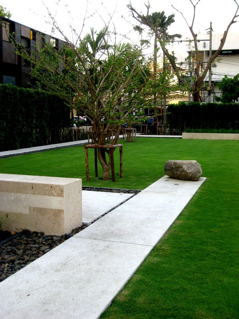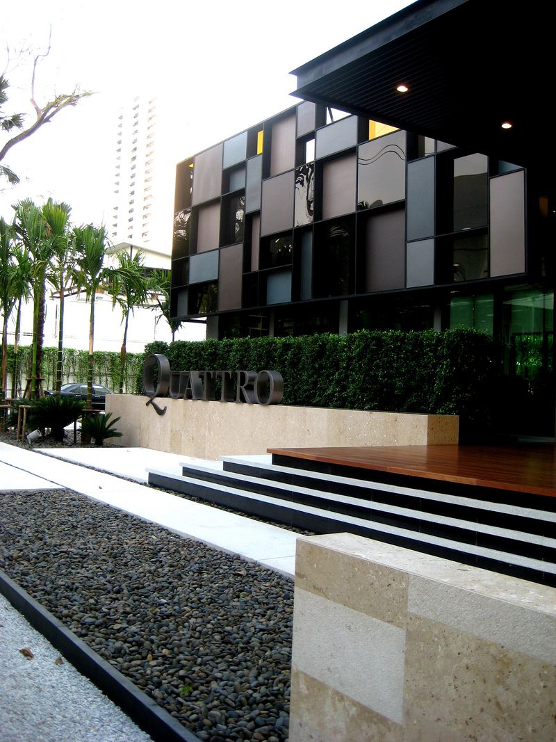 Sansiri可算是泰国排行第一的开发商。它名下的奎阿图住宅区是最奢华的垂直住宅项目之一。本案由2栋耸立于通罗(曼谷著名的街道)中央的公寓大厦组成。由于坐落地址是Soi 通罗4号,因此本案取名为奎阿图(意为全时四驱)。其中的花园设计由TROP公司负责。TROP公司希望设计一个独特的、TROP风格的花园。本案的项目名则是设计的起点。4号是设计的关键所在。