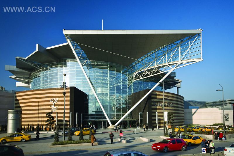 Istinye总体规划13公顷,有一系列的零售、餐馆、娱乐场所以及四层的子级停车场。项目的核心是宏伟的圆形大厅,即在扇形分段屋顶结构下的一个戏剧性的类似舞台的空间。由一个中央外桅杆和悬挂电缆支撑,这100米直径的坚硬外壳顶盖包含一个美食广场、一个有着体育场座位的12屏电影院、主题零售店和一个露天剧场。露天生活方式中心、街心公园、世界级的街边购物、两层的专业零售区提供了一个轻松的气氛,而百货商店在第三层时尚区的巨大天窗和丰富自然采光下,呈现出一个新鲜的封闭式购物中心。