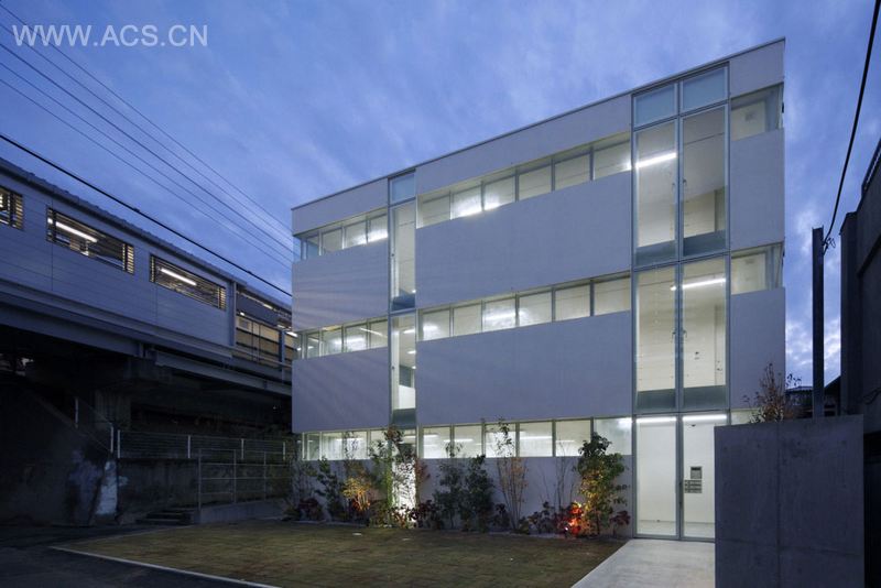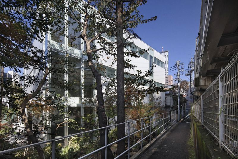 这是建造于南新宿站前的一栋办公楼。 由于尽可能保留建筑周围现有植物的积极措施,以及虽地处市中心仍保持葱郁绿植的丰富计划,使得项目在街道上形成了饱含绿色的生态景观。 开口部分使用喷砂机处理扩散光线,实现了可以引进柔和自然光的办公室空间。地平面起1.8米高作为墙面,从而保证无论租借者的使用方式如何,都能尽可能地保持建筑外观的美观整洁。