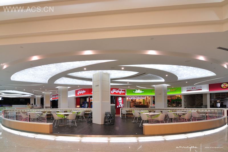 Seef 购物中心改造项目是一个重建主题的概念,要求通过设计在该场地创建最具吸引力的饮食和购物体验。 世界级的建筑室内设计公司dwp构想出给商场的四个中庭配备引人注目的雕塑吊灯,它们分别代表Seef不同的元素:大海、沙滩、阳光和火。这些中庭供应着舒适的客厅家具和无线互联网,以吸引年轻人和专业人士来商场社交、工作或放松,并由此利用设施、服务和商店。Seef商城的两栋美食公寓被改建成视觉刺激、舒适的餐饮区,适合朋友和家人用餐。该改造还包括一个当代的照明处理和装饰,这提高了商场走廊和商店门口的整体体验。