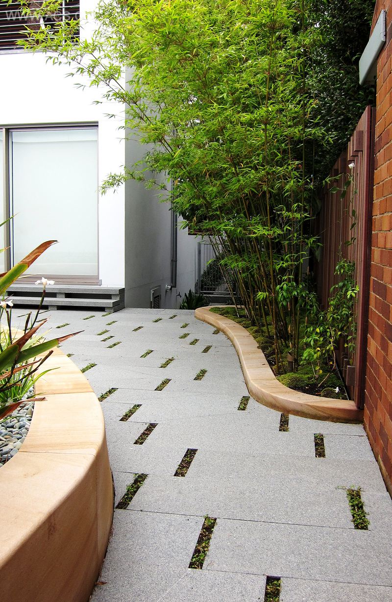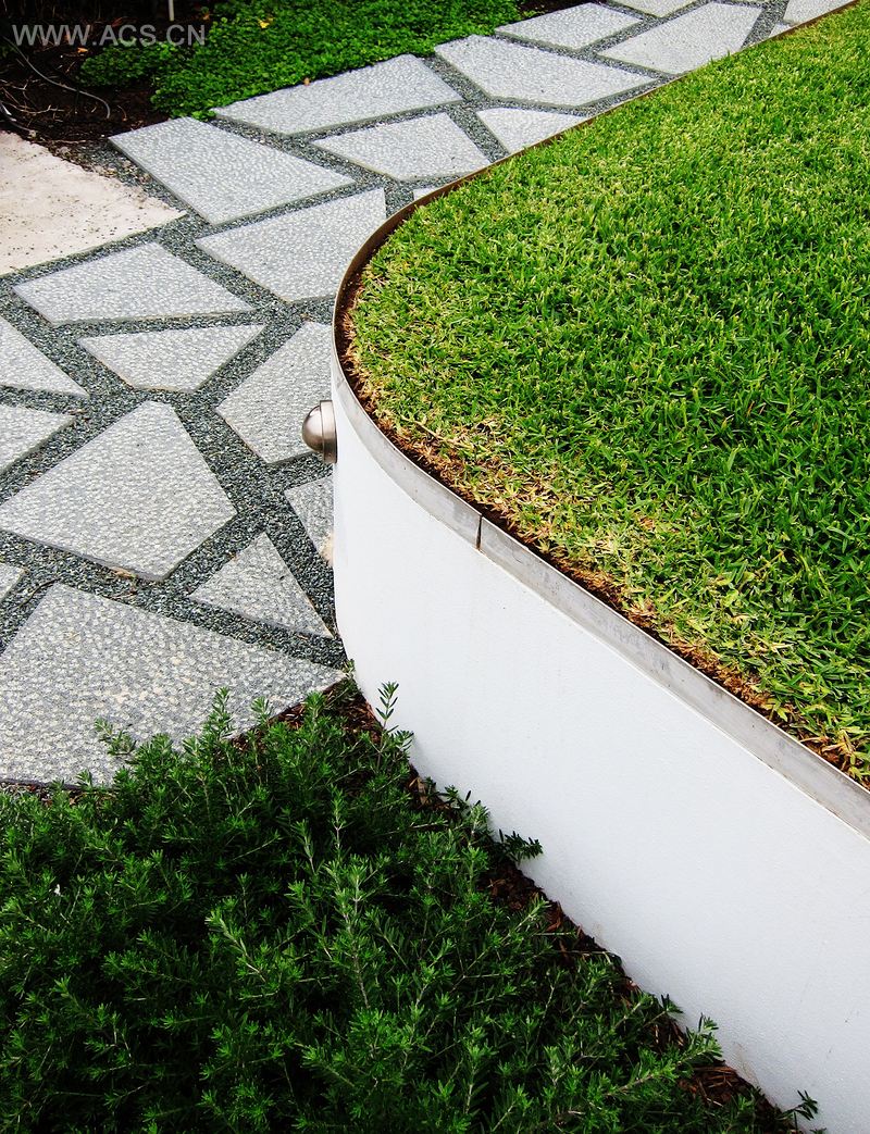 有着一望无尽的草地的滨水花园有种草地在水上漂浮的假象。然而本案的花园却“真正地”漂浮在水景上。设计师通过繁复、细致地分析花园和水景这两个小空间,采用高品质的材料和结构,从而实现这一构想。中央庭院是与建筑物配套、造型简单的锻炼场所。砂岩雕塑而成的长凳横切面虽和之前有所不同,但纹理还是特别明显。随着蔬菜的生长,空间的层次感也有所变化。沙滩式样的砂岩采集于当地,石面路都是来自中国的绿色花岗岩材料。