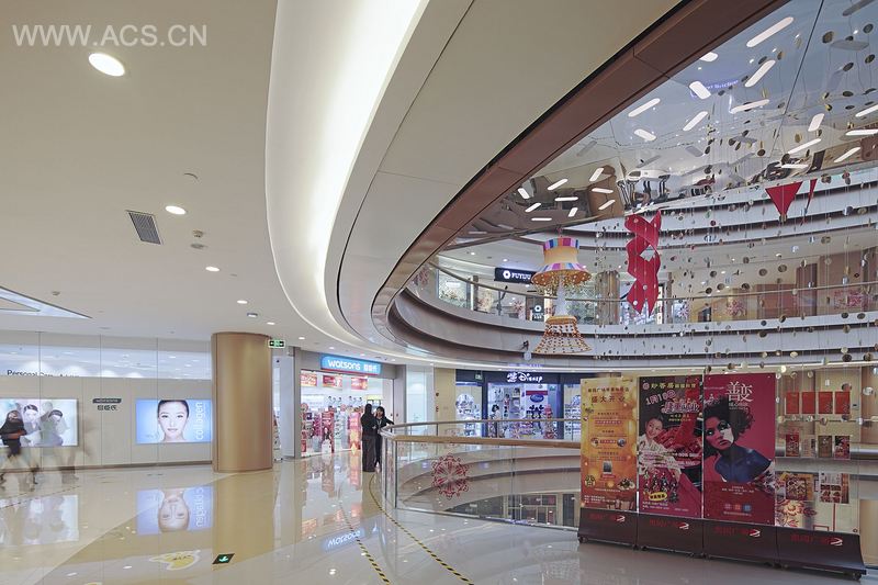 奥园广场项目是中国奥园集团首个购物中心项目,是集团明星项目。坐落于番禺新城市中心区发展主轴核心位置,项目由大型购物中心、商业街及酒店式商务公寓组成,总占地面积约6万平方米,总建筑面积约24万平方米。 奥园广场室内一共四层,建筑的内部空间相对单调,为此,设计通过运用“折”面的处理,为各空间增加层次造型与丰富形态。各层侧裙采用了横向折叠的方式,形成了徐徐向上、渐变的形态,富有层次感、韵律感。