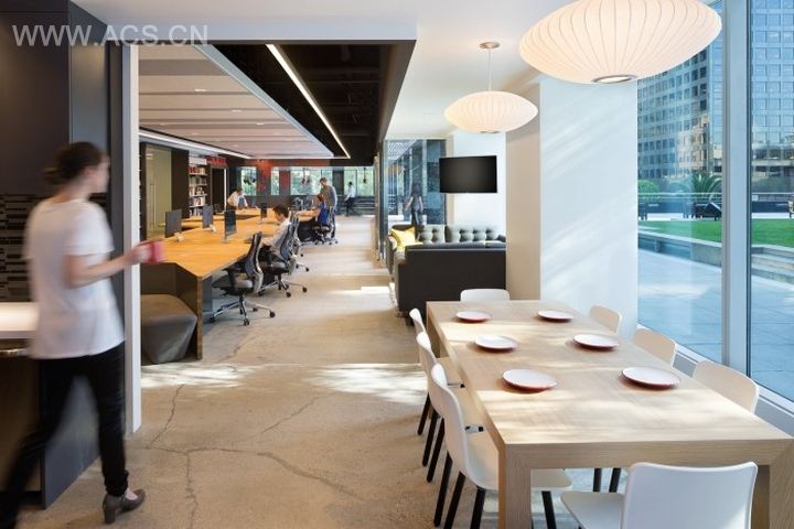 Unispace近来刚刚搬到了他们位于洛杉矶的一间新办公室,这间办公室展示了有活力的办公空间和公司因地制宜的设计能力。不规则状的办公长桌容纳多个员工并充分利用原有空间。