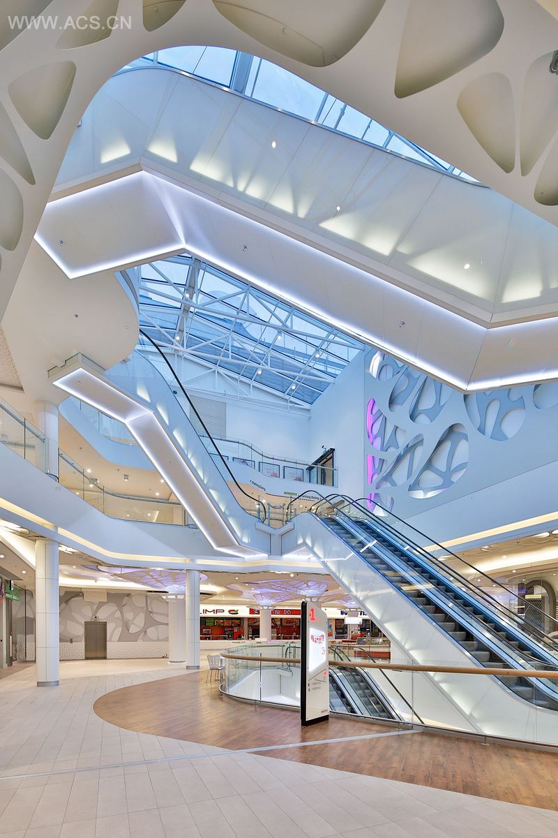 首要的设计理念在很大程度上对建筑进行了调整,例如公共空间相对较少的日照。因此,照明成为关键点之一。在进行商业空间的设计时必须考虑的最重要的元素是保证建筑内均匀平缓的人流。这些方面对于促进销售有好的影响。被普遍认可的美学是实用主义,最优化租户商品的展示。设计师花了很长时间,来确定公共空间的布局,寻找特色点、提取及创造最具吸引力的片段。