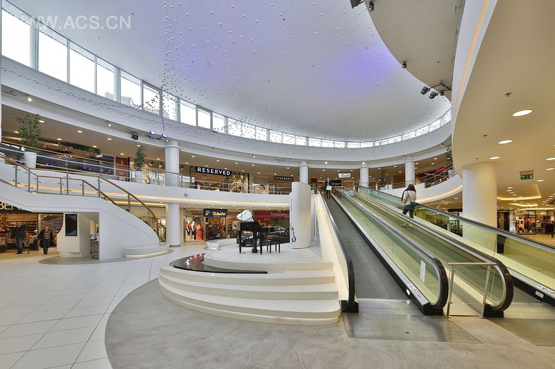 博斯建筑最重要设计目标就是要设计出一个清晰、明亮的空间,购物及休闲的友好氛围,能让置身其中的人们觉得舒服。为了达成如上目标,设计要面临的一大挑战是天花的翻新。天花的形状为走廊和广场空间的入口提供平稳过渡,同时保证了充足的光照。