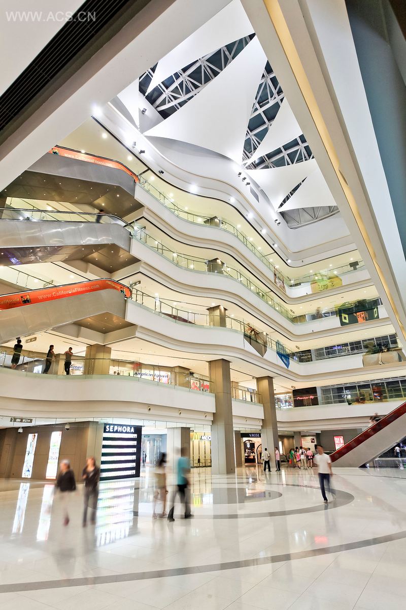 该翻新改建项目坐落于上海最繁华的商业街。室内设计创造了一个连续顺畅的商业动线,同时还把中庭恢复成一个通透的社交中心。导向型的地板和天花图案可以引导顾客,并扩大顾客的视野。灯光设计重点突出店面和走廊。整个购物环境看上去年轻而充满活力。