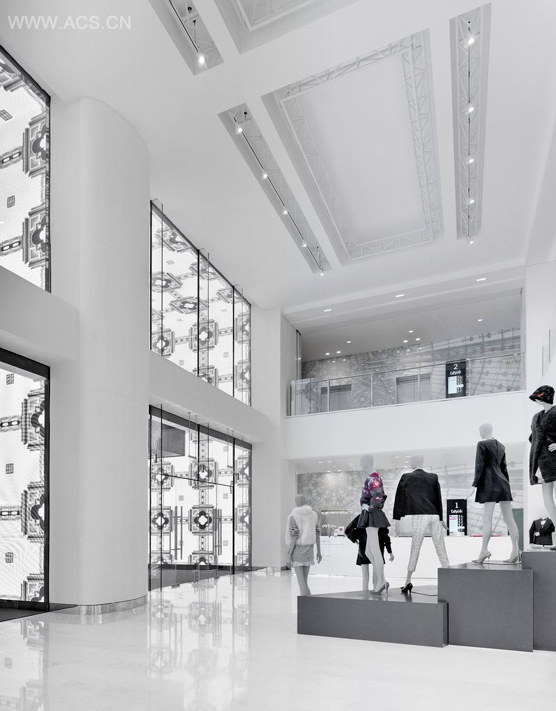 Key walkways ed the two atria however the layout to the heart of the store was more about a sense of discovery. A strong architectural language, d on the Parisian apartment, anchored the brands to the perimeter.