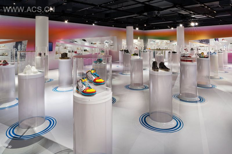 The exhibition was designed by famed industrial designer Karim Rashid. A significant departure from the Bata Shoe Museum’s previous installations, the exhibit’s look is very modern in style and vibe with blasts of colour against the predominantly white environment, a design that is true to Karim’s aesthetics and vision.