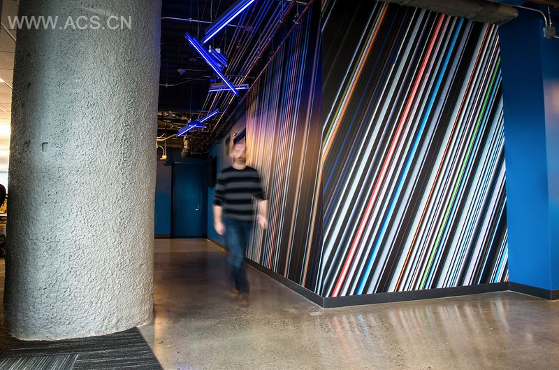 设计师利用办公空间成功演绎出BOX的核心价值观——有趣,活力。黄蓝打造出海洋般的舒适。空间上,划分出公共空间,半开放的私人空间,让员工在自由的氛围中尽情发挥所能,提高效率。