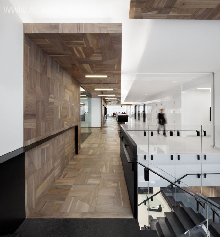 用玻璃门划分空间,视野更加宽阔。木与黑打造出质感空间,并点缀以热情的红,简约富有活力。