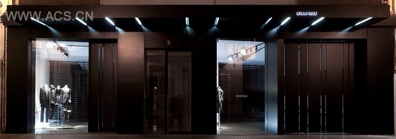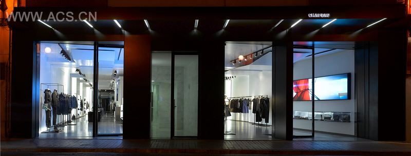 Inside the store you pass through a sequence of scenes beginning with the access, dominated by two large LED screens. The next scene is defined by long pieces that emerge from the walls, then you find the counters of stone volumes that start from the ground and are a connecting space between male and female areas. At the end the spaces join again in a high background topped by a skylight that floods the interior of the store with natural light.
