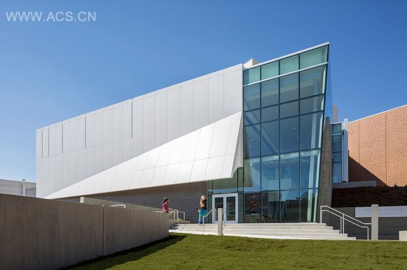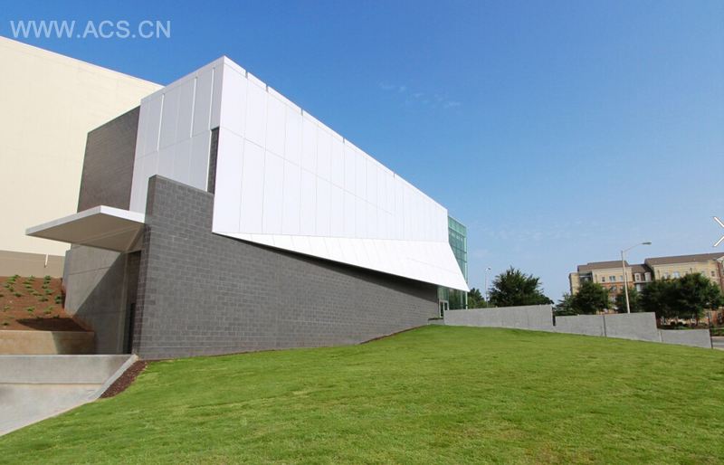 这是由Stanley Beaman & Sears设计的祖克曼艺术博物馆。该项目位于肯尼索州立大学,包括用于永久收藏品的画廊、临时展览以及储藏室、职工办公室以及相关配套设施。肯尼索州立大学期望这个博物馆将作为一种文化资源,不仅服务于校园社区,还服务于整个亚特兰地区。因此,建设一个大胆的地标建筑至为重要。该博物馆必不可少的元素就是需要一个大胆的建筑形式,而且要成为能供游客观赏的地标。大学领导层还明确要求该建筑要与校园现状的米色和红色砖墙的建筑形成鲜明对比,而且希望该博物馆能够使校园看起来更加活泼。