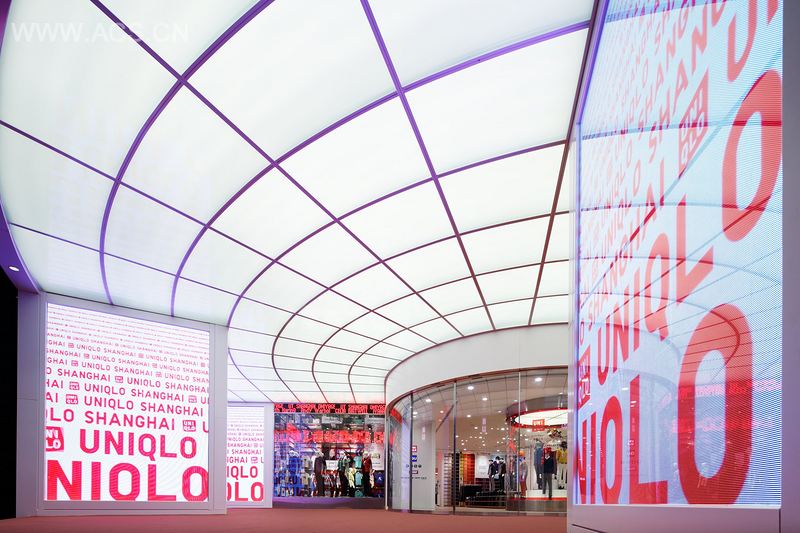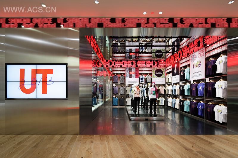 Taking Fast Retailing group's four brands starting with Uniqlo into a 9,917 square meter structure, this extensive project takes on the interior design of Uniqlo Shanghai, the largest among all the brand's stores worldwide. Utilizing the bold spacial composite on that he has established with Uniqlo, Katayama also expresses, through the design, the brand's power in its ability to fulfill such a vast volume all on its own. The walls of the center atrium are clad in stainless mirror surfaces to reflect the four escalators and LED tickers, as well as the surrounding torsos to create a unique sense of openness and playfulness. This space has become one that is largest, latest, and most of all, powerful.