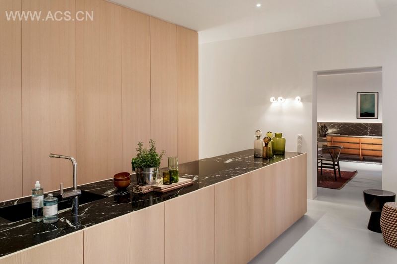 This Moscow- d couple’s second home is located on the ground floor of a classical villa in the Grunewald district of Berlin. Pared-down to the main elements, the new design for this apartment reveals clear gallery-style rooms, whose character is accentuated by a minimalistic lighting concept from .PSLAB.
