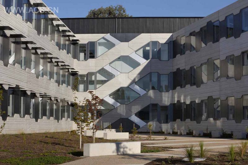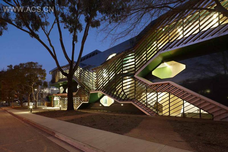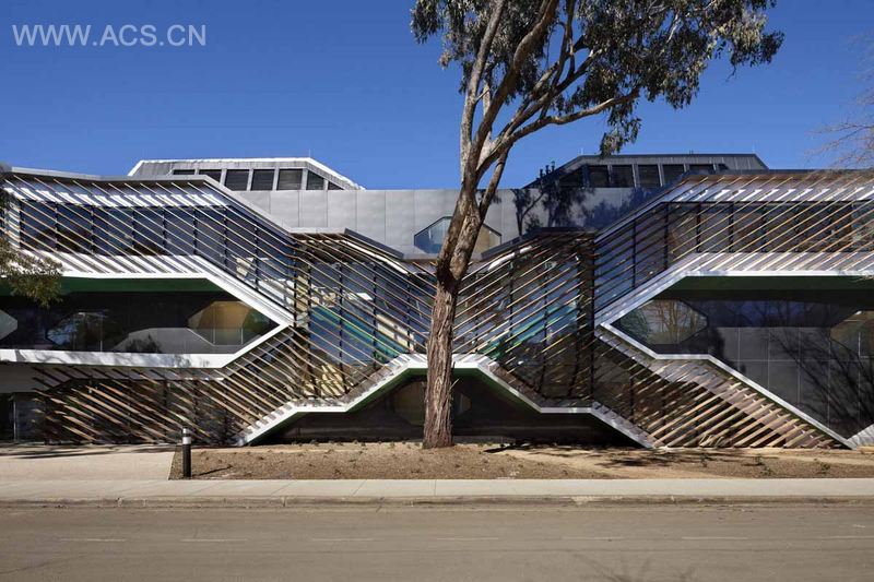 堪培拉澳大利亚国立大学生物科学研究中心是由Lyons设计完成的。该项目X形的交叉楼梯将两边的实验室在空间上联系起来,并在外面覆以木制百叶。