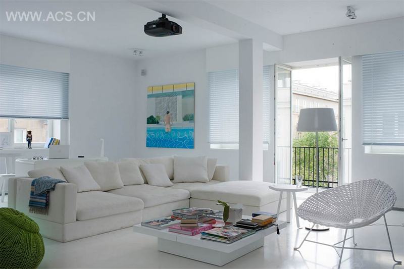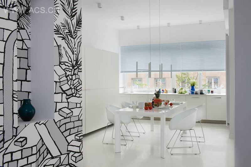 The space of this 140 metre square apartment in the center of Warsaw, Poland is just seemingly ascetic. The interior of the house, was arranged by Mood Works studio in a way to give rest to eyes and full comfort of use. In the bright space there is also a space for art.