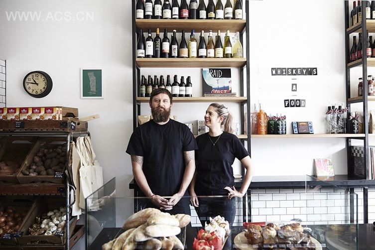 Branding is by Bold & Bold, and the interior by designers Kathryn Mazure and Meagan Roberts is a contemporary take on the Open All Hours format. There’s blackened steel shelving, a stripped and resin-coated floor, a custom-made reclaimed wooded table in the centre and a counter constructed from reclaimed gymnasium floor timber and stone.