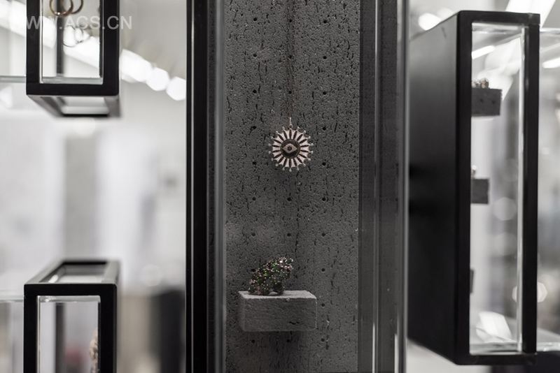 所用的材料都经过精心挑选,具有天然未加工件的金属,玻璃,木材和石材加工 - 灰色水成岩用于其内部结构,暗指内存的机制。铜牌被应用,因为它传达和改造光线的能力,而黑色金属和木材给出了节奏,质感和色彩感,融合的元素融入一个连贯的整体。