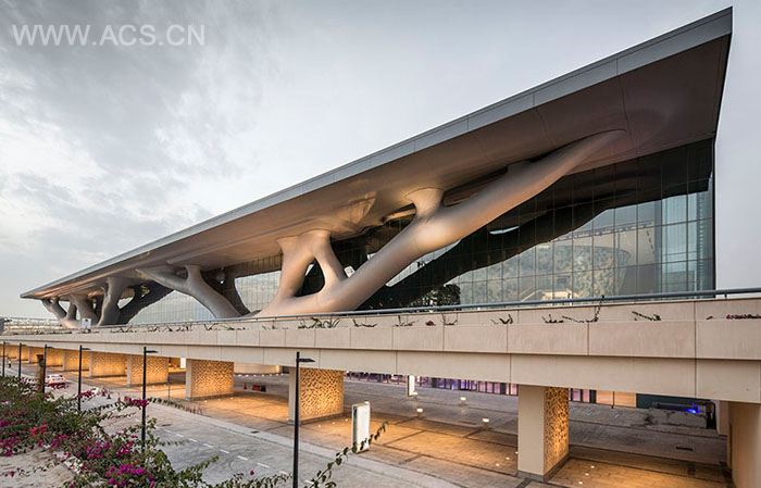卡塔尔国家会议中心由日本建筑师矶崎新设计,该会议中心是此国最先进的会议和展览中心之一,外型上有一个称为“锡德拉树”的造型,树木是沙漠中学习和休息的明灯,是私人和学者汇聚的避风港,高大的造型如树枝交织,支撑起屋顶,十分壮观。