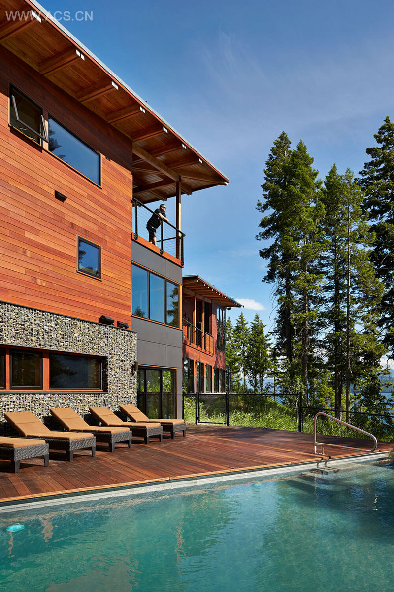 The project accommodates the active lifestyle of a family of seven. The interior palette consists of durable natural materials and exposed structure. The retreat sleeps 18+ people to include friends, extended family, and colleagues. It provides a setting where the couple can balance work and play by hosting clients from around the world for their global consulting firm. People who would normally meet in corporate board rooms can build consensus in an inspiring setting.