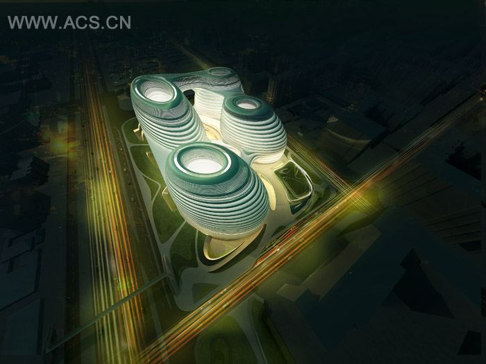 底部三层是临河和娱乐功能,之上是办公场所,顶部是可以瞭望宏伟城市的酒吧,餐厅还有咖啡厅。这些不同的功能被天衣无缝的集结在一起,联通银河SOHO建筑本身,成为城市中一个重要地标。