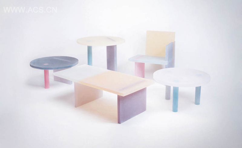 韩国的设计师Wonmin Park创造了这一系列浅色树脂凳椅家具。不对称的形式和透明及不透明之间的色彩质地,创造似雾非雾的弥漫感,完美的介于实体和非实体之间。