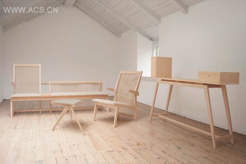来自日本,在瑞典留学生活的女设计师Haruka Furuyama希望自己未来的工作室具有舒适,温馨,简约,明亮,让人振奋的氛围,带着这个盼望,她在学校里发现了一个堪称理想之地的小画室,以这个画室为空间原型,她创作了这系列共四件木质+编绳家具。一个沙发,一个躺椅,一件桌柜,一个轻巧的茶几。公共与私人空间都适用。