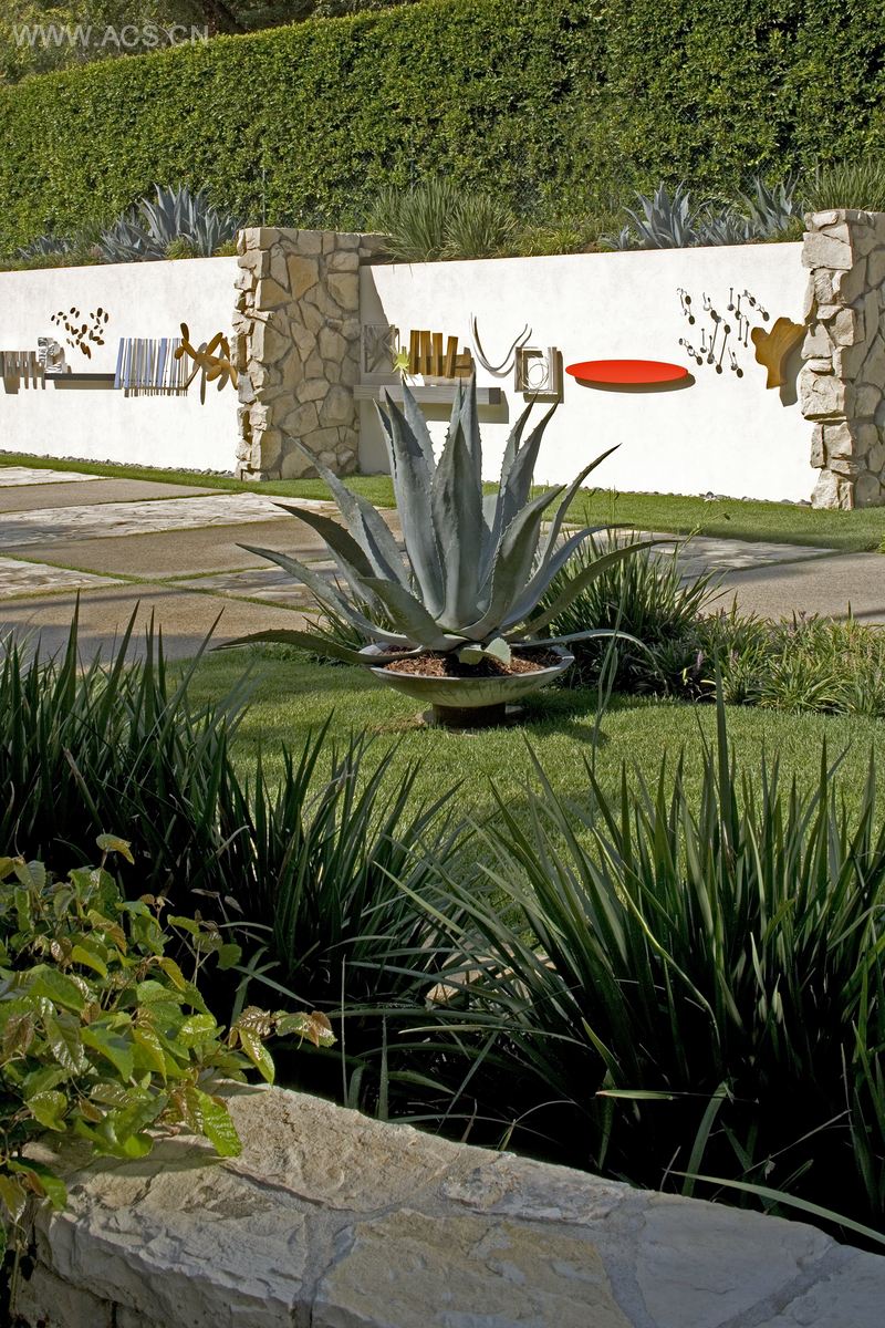 本案设计的灵感来源于住宅的现代化样式和建筑物选址的空旷性。现代主义花园设计以各种几何形体和微型植物调色板给入口布置了一个舞台,使之通往住宅。后面的草坪花园设计达到一个极点,使得现代花园与周边自然景观融为一体。顺着毗邻的房地产和干枯的沟壑往下,自然景观渐渐开阔,身处其中好像一颗细小的尘埃。花园景观顺应着地点环境和开阔性而有所不同。纵观整个案例,喜阴植物花园、多汁植物花园和各种其它植物生态系统有序陈列其间。在这些花园里散步,景观将会把游客的记忆带往各地。地点和体验、建筑物和花园,这些紧密联系在一起,共同造就了花园的独特性。