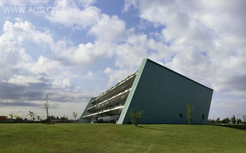 该建筑距离道路和交通环岛非常明显。该网站是一个位于入口附近的一个新的地区医院,也是由Ambasz设计,当地的铁路和主要巷道设计了一个扁平,三角形2.8公顷地段。
