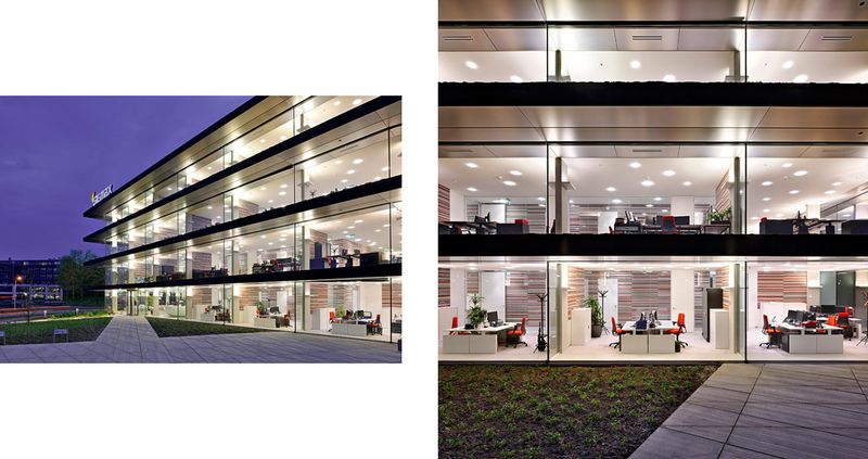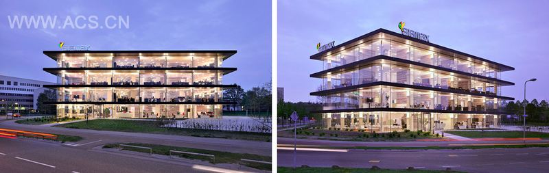 在荷兰恩斯赫德商业科技园内的FC Twente体育场(Grolsch Veste体育场)和地铁站对面,一座剔透精美的建筑脱颖而出:这是建筑师Paul de Ruiter专为ICT公司SIGMAX设计的总部办公楼,具有杰出的流线型建筑结构。连续的玻璃幕墙不仅使室内享受到充足的阳光,营造出愉悦的工作环境,同时,身处室内也能与外界毫无阻隔,颇有 “身临其境”的感觉。而在办公楼内,室内设计师仍然保留,甚至加强了这种开放的特点。