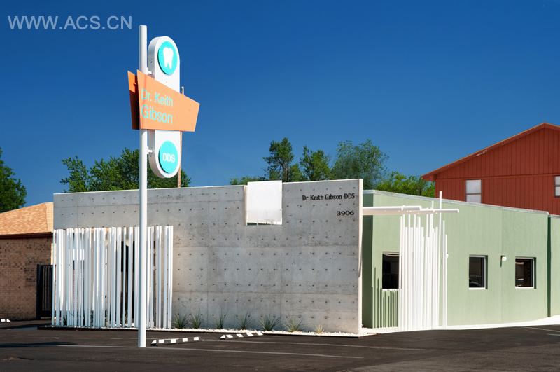 项目坐落在俄克拉何马州西部的一个沿着主干道融合各种机构的城市,这项改造由Fitzsimmons Architects帮助重建一个小牙科办公室的身份。