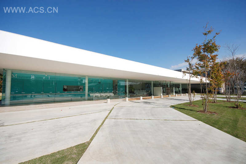 室外的墙壁大部分被玻璃包裹,室内空间被低矮的墙壁分隔,这样的做法使所有的工作区都有室外的景色。一个巨大的悬垂的屋顶延展5.8米,它控制着阳光的吸收,创造出一个有效的建筑外围的带有覆盖的空间。