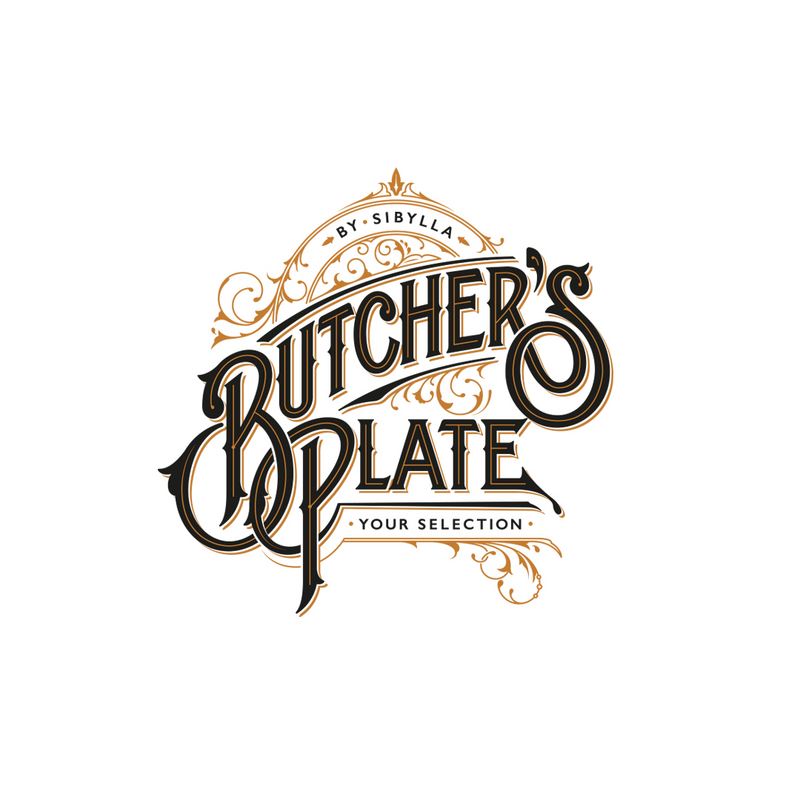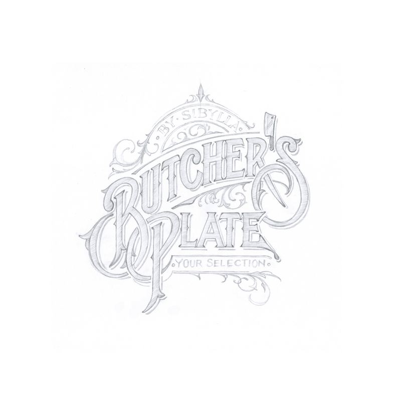 Hand-drawn logotype and pattern design for Butcher's Plate by Sibylla.