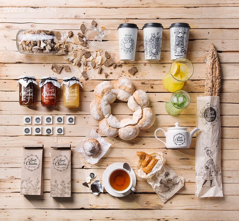 Graphic illustrations of Louis Charden brand character life story are indispensable and the most valuable part of the café shop and bakery identity.